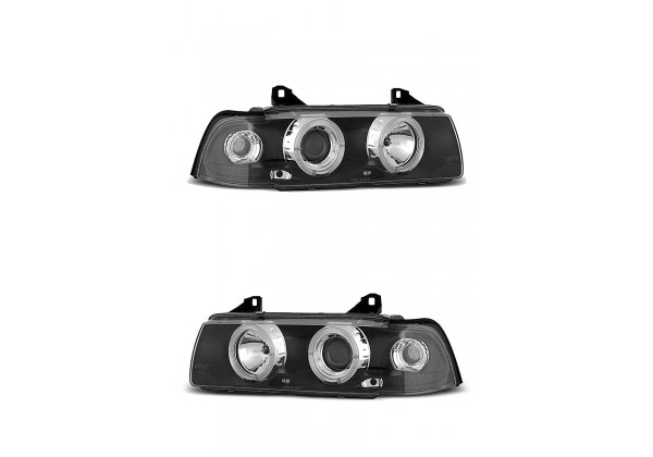 Juego De Faros Delanteros Bmw E36 12.90-08.99 Ojos De Angel Negro