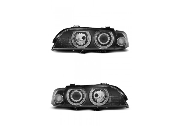 Juego De Faros Delanteros Bmw E39 09.95-06.03 Ojos De Angel H7/h7 Negro