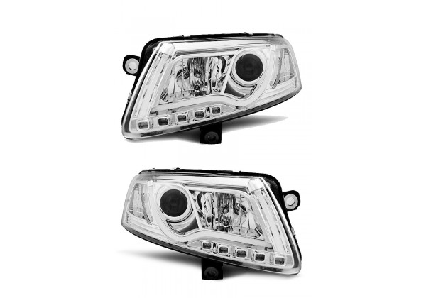 Faros Delanteros Audi A6 C6 04 04-08 Led Tube Lights True Drl Cromados Producto Homologado Ece R87 Drl: Led Luz De Estacionamiento: Led Intermitente: P21w Luz Baja: H7 Luz Alta: H1 Preparado Para Regulacion Electrica Montaje Conectar Y Listo Sin Modificaciones