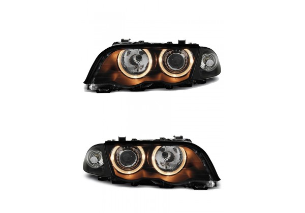 Juego De Faros Delanteros Bmw E46 09.01-03.05 Ojos De Angel Cromados