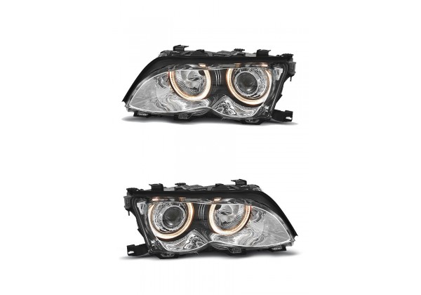 Faros Delanteros Bmw E46 09 01-03 05 Ojos De Angel Cromados Projector Solo Compatible Con Limousine, Touring Producto Homologado Luz De Posicionamiento: Ojos De Angel Luz Baja: H7 Luz Alta: H7 Preparado Para Regulacion Electrica Montaje Conectar Y Listo Sin Modificaciones