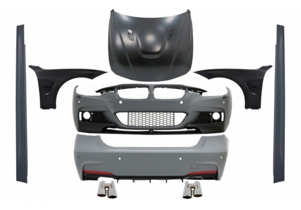 Kit carroceria BMW 3 Series F30 (2011-2019) M-Performance Design con Double Twin Tips Carbon Shiny and Front Fenders Black & Hoo