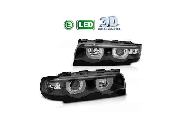 Juego De Faros Delanteros Bmw E38 06.94-08.98 H7/h7 Ojos De Angel Negro