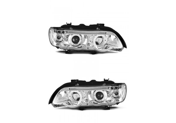 Juego De Faros Delanteros Bmw X5 E53 09.99-10.03 Ojos De Angel Negro Led Indicator Xenon