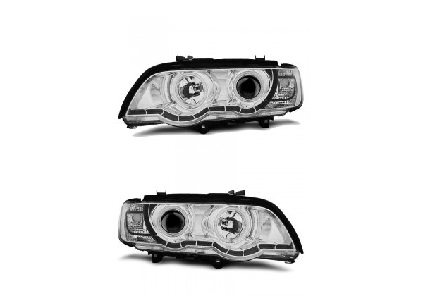 Juego De Faros Delanteros Bmw X5 E53 09.99-10.03 Ojos De Angel Negro