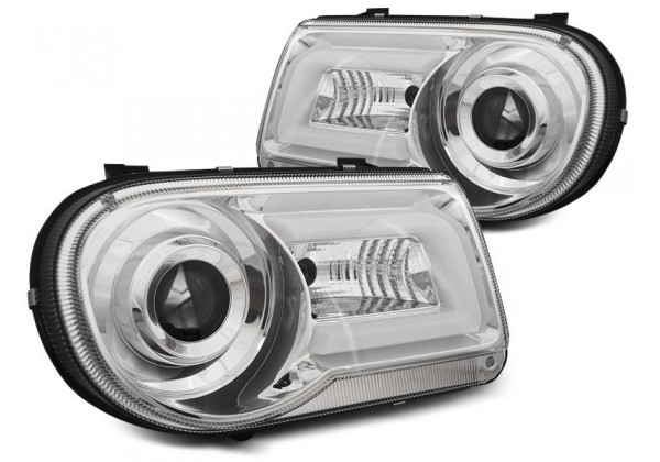 Juego De Faros Delanteros Chrysler 300c 05-10 Negro Tube Light