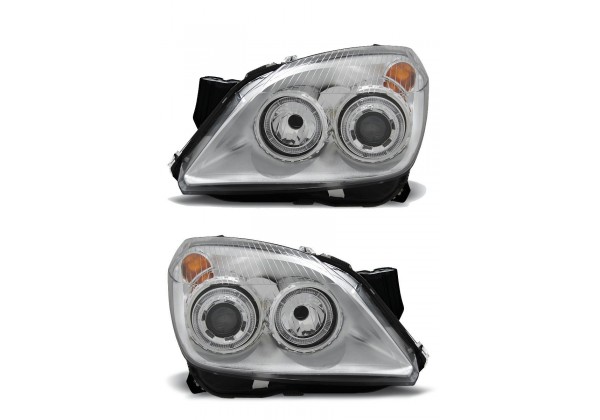 Faros Delanteros Opel Astra H 03 04-09 3 5d Ojos De Angel Cromados Aprobación E-marcado (producto Homologado) Luz De Posicionamiento: Ojos De Angel Luces De Giro: P21w Luz Baja: H7 Luz Alta: H7 Preparado Para Regulacion Electrica Montaje Conectar Y Listo Sin Modificaciones