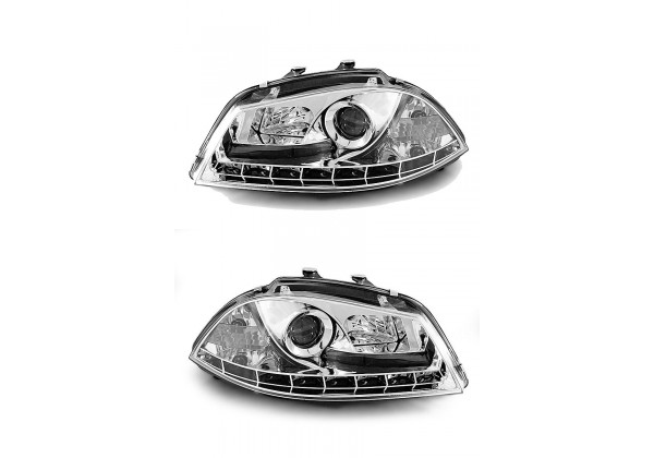 Juego de faros delanteros Seat Ibiza 6l 04 02-08 Daylight Cromados Faros Con Luz De Posicionamiento En Funcion Leds Producto Homologado Luz De Estacionamiento: Led Luces De Giro: P21w Luz Baja: H1 Luz Alta: H1 Preparado Para Regulacion Electrica montaje conectar y listo sin modificaciones