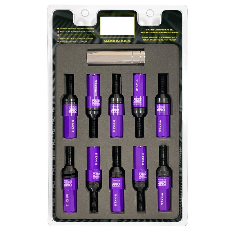 Omp Speed Set 20 Tornillos De Rueda M14x1.5 Llave 17/19 L: 27mm Color Morado Din 10.9