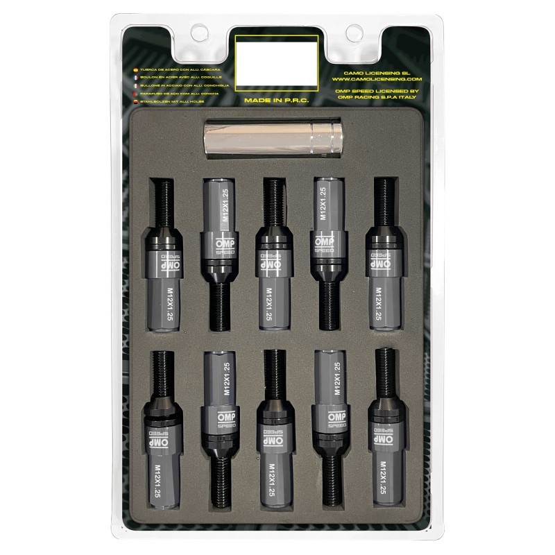Omp Speed Set 20 Tuercas De Rueda M14x1.25 Llave 19 L: 40mm Color Negro Aluminio 7075