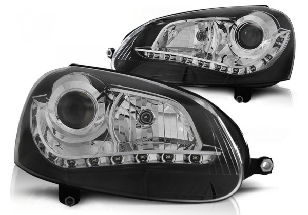 Juego de faros delanteros Vw Golf 5 Daylight Negro Xenon Faros Con Luz De Posicionamiento En Funcion Leds Hi-low Projector Type Producto Homologado Luz De Estacionamiento: Led Luces De Giro: P21w Luz De Baja Y Alta: :d2s Regulation: Electrica montaje conectar y listo sin modificaciones