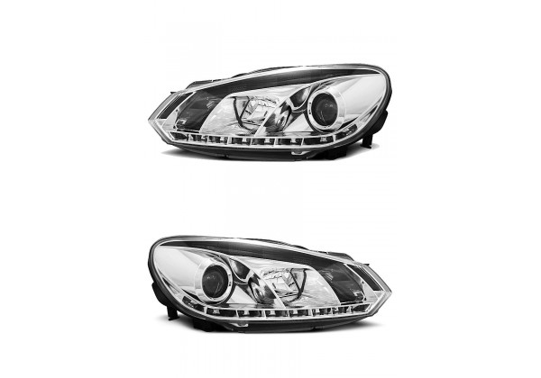 Faros Delanteros Vw Golf 6 10 08-12 Tru Drl Cromados Faros Con Autentica Luz Diurna Real Leds Producto Homologado Ece R87 Luz De Estacionamiento: Led Luces De Giro: P21w Luz Baja: H7 Luz Alta: H1 Preparado Para Regulacion Electrica Montaje Conectar Y Listo Sin Modificaciones