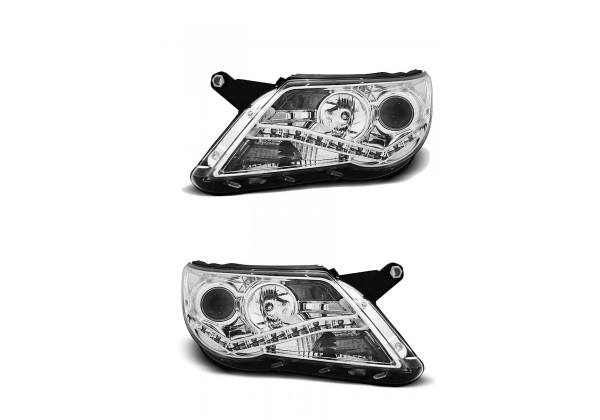 Faros Delanteros Vw Tiguan 10 07-11 Daylight Cromados Faros Con Luz De Posicionamiento En Funcion Leds Producto Homologado Luz De Estacionamiento: Led Luces De Giro: P21w Luz Baja: H7 Luz Alta: H1 Preparado Para Regulacion Electrica Montaje Conectar Y Listo Sin Modificaciones